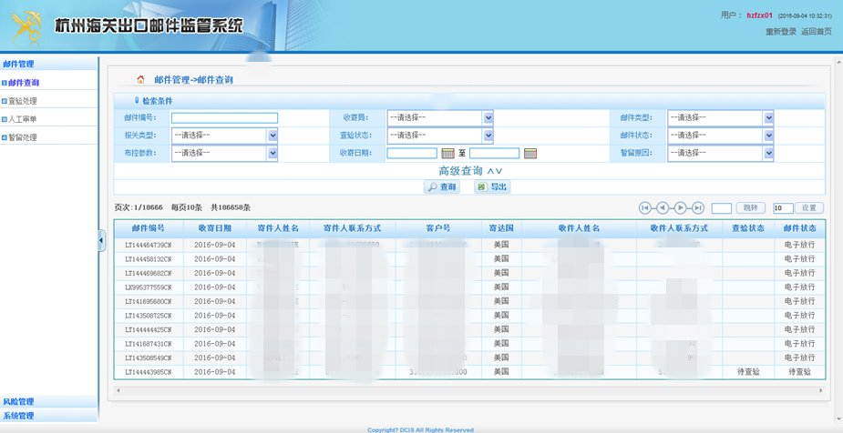 自2012以来,邮办进出境邮件监管量呈现大幅增长,2015年出口邮件监管量已达到了7157万件,而邮政小包等出口邮件的监管还是停留在传统的人工作业模式。杭州海关出口邮件监管系统主要建设内容为实现流水线统一调度管理,对接邮政预申报系统,根据邮件类型实施分类通关,分类监管,实现邮件的全自动分拣等。该系统强化了海关对出口特快邮件的实际监管,减轻了关员的工作强度,提高了通关效率。
